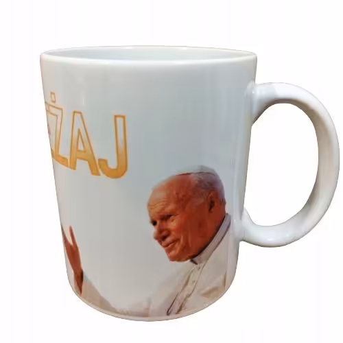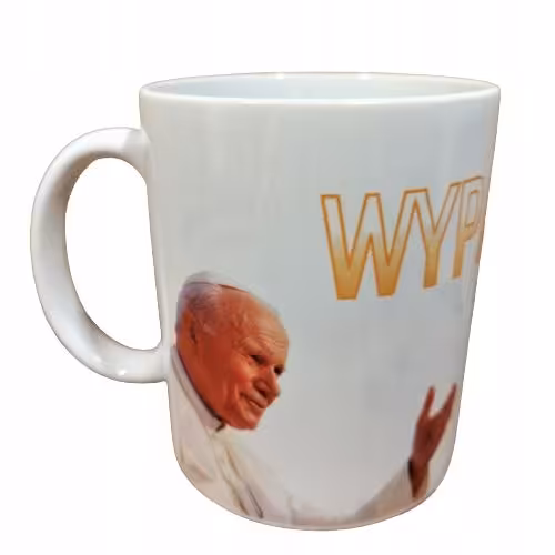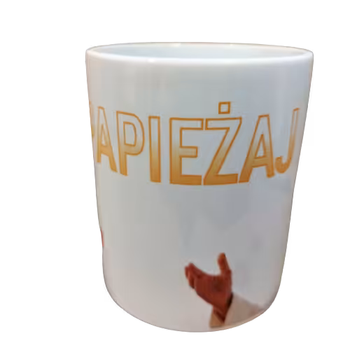 Ta aukcja dotyczy kubka z kolekcji Sarnodzieło z nadrukiem "Wypapieżaj".